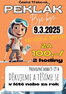 Neděle 9.3. bude posledním dnem letošní zimní sezóny. Pojedeme v čase 9-19 za ultravýhodný tarif 100 Kč/ 2 hodiny.