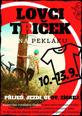 Od čtvrtka do neděle rozdáváme bikerům trička projektu Singletrack Glacensis. Jak to funguje? Každé ráno vyhlásíme stezku, kolem které budou rozmístěny kolíky. Pokud kolík najdete a dovezete obsluze dostanete tričko. Dětské, dámské, pánské, dle vlastního výběru. Nemá smysl hledat a vozit více kolíků, pravidlo je 1 biker=1 triko za den. Jak kolík poznáte? Svítivě oranžový, zapíchnutý na dohled od stezky v bezpečném místě.